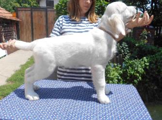 Lox is the most calm sweet HUGE boy ever. We imported him from Serbia as a pup and he could not have been any easier since day one. He has a massive head and heavy boning. He is a very substantial boy and will continue to grow for another two years or so. He currently is 90 lbs lean. Although just stunning, his personality is to die for with the most calm demeanor. He loves everyone he meets and we can trust him with any pups. Even ones that are a handful. He seems to know how to make them all calm down with no effort at all. He is going to produce the most amazing puppies and we can't wait! D.O.B. 3/27/2018 F.C.I. #JR 707682 Zr A.K.C. #SS07058401 AKC DNA - #V904223 OFA Hips Prelim - Good #2070975 OFA Elbows Prelim - Normal #2070975 OFA Shoulder - Normal #GR-SH295M16-VPI PennHIP top 90% - # 133691 - Right DI 0.25, Left DI 0.28 OFA Dentition - Full Dentition #GR-DE906/16M-VPI OFA Cardiac - Normal #PENDING OFA Thyroid - Normal #GR-TH3882/16M-PI OFA Patella - Normal #GR-PA1830/16M/P-VPI Degenerative Myelopathy - Normal/Clear via PawPrint #101024 Dystrophic Epidermolysis Bullosa - Normal/Clear via PawPrint #101024 Ichthyosis - Normal/Clear via PawPrint #101024 Muscular Dystrophy - Normal/Clear via PawPrint #101024 Osteogenesis Imperfecta - Normal/Clear via PawPrint #101024 PRA 1 - Normal/Clear via PawPrint #101024 PRA 2 - Normal/Clear via PawPrint #101024 PRCD PRA - Normal/Clear via PawPrint #101024 Sensory Ataxic Neuropathy - Normal/Clear via PawPrint #101024 Neuronal Ceroid Lipofuscinosis 5 - Normal/Clear via Pawprint #101024 Click HERE for Lox's pedigree on K9Data Click HERE to verify Lox's health clearances on OFA |